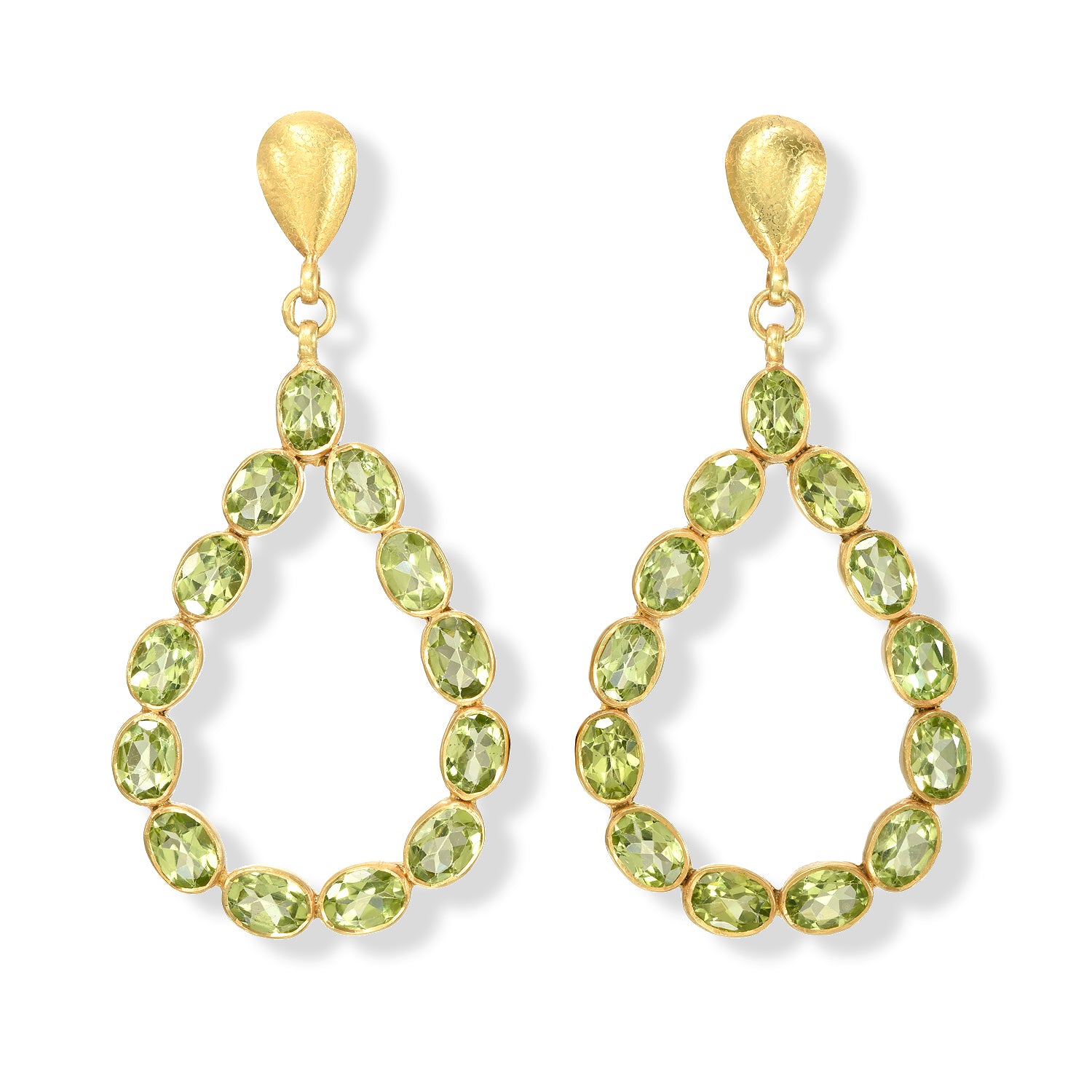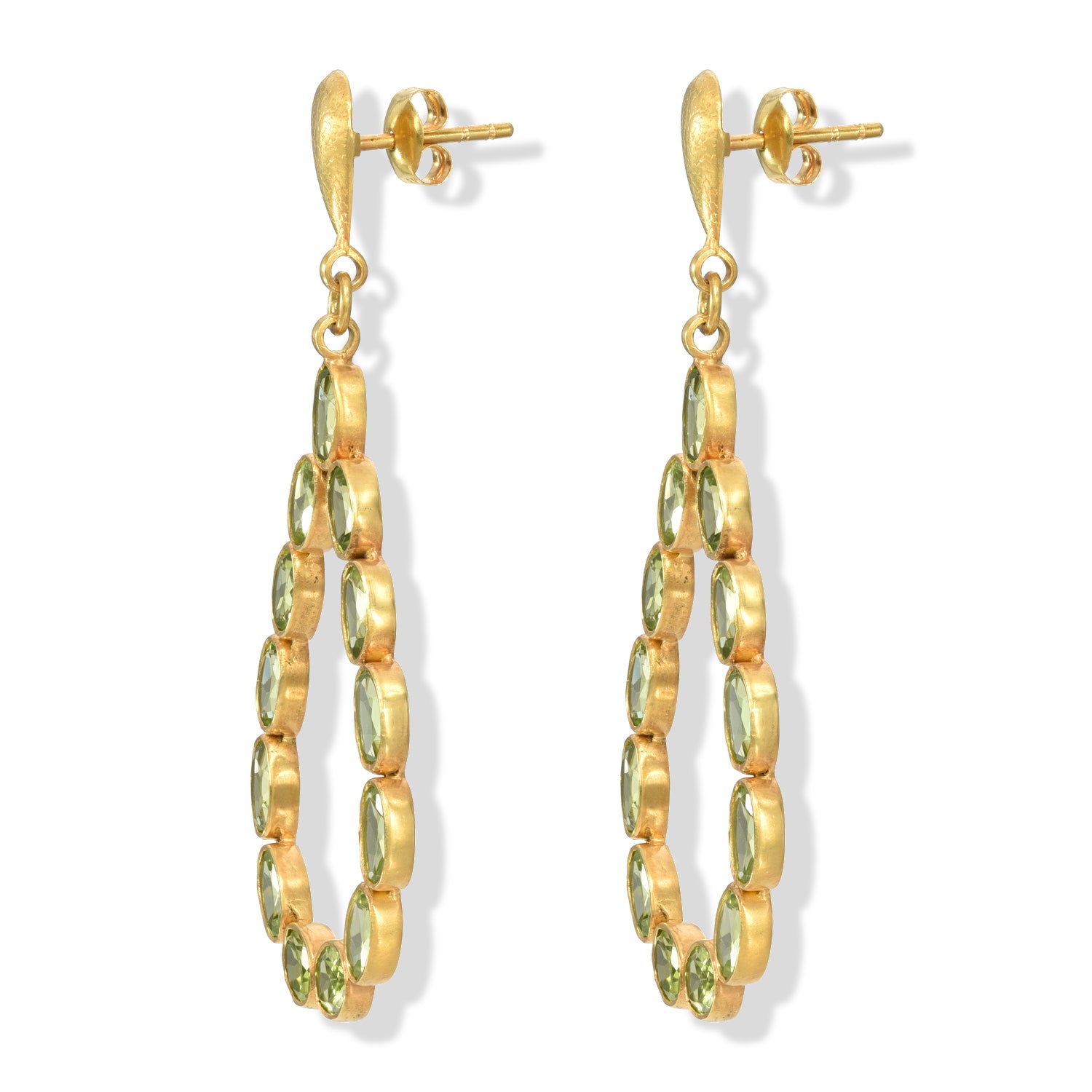 In ancient times it was believed that peridot's bright sparkle could ward off evil during the night. These beautiful 18K Gold Peridot earrings, can light up the darkness, so you're protected at all times.